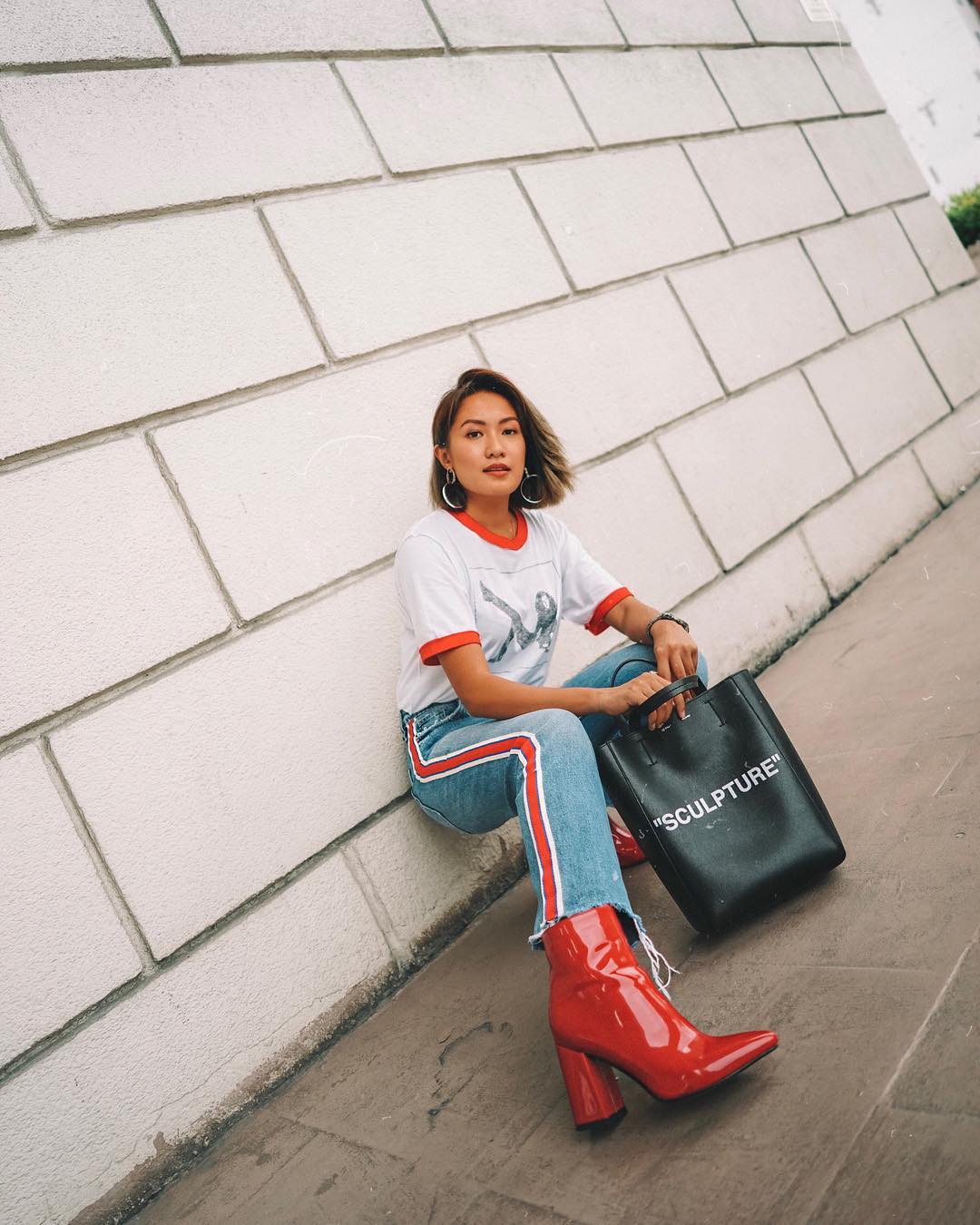 This girl could rarely be seen in pastels and too-girly clothes and would be often observed donning the latest atypical designer items. Shirt and jeans may look ordinary in other people, but because of her out-of-this-world red leather boots, Laureen looks like straight out of an editorial though she may just be strolling down a street.