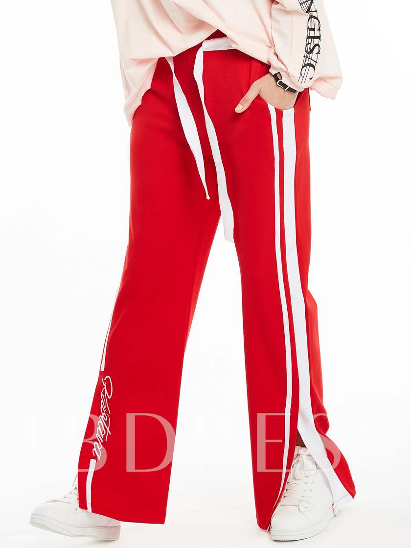 Letter Elastics Print Slim Wide Legs Women’s Casual Pants