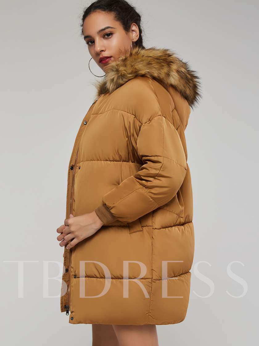 Mid-Length Faux Fur Patchwork Zipper Up Women’s Overcoat