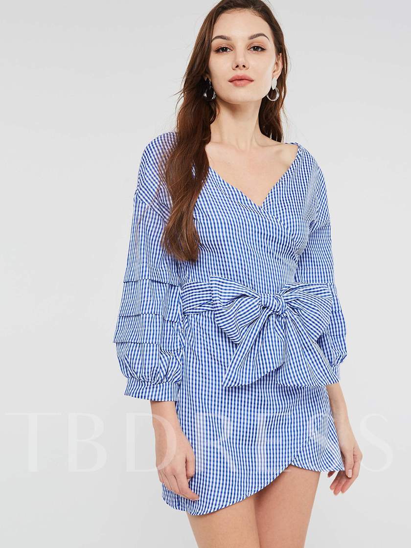 V-Neck Lace-Up Plaid Women’s Day Dress