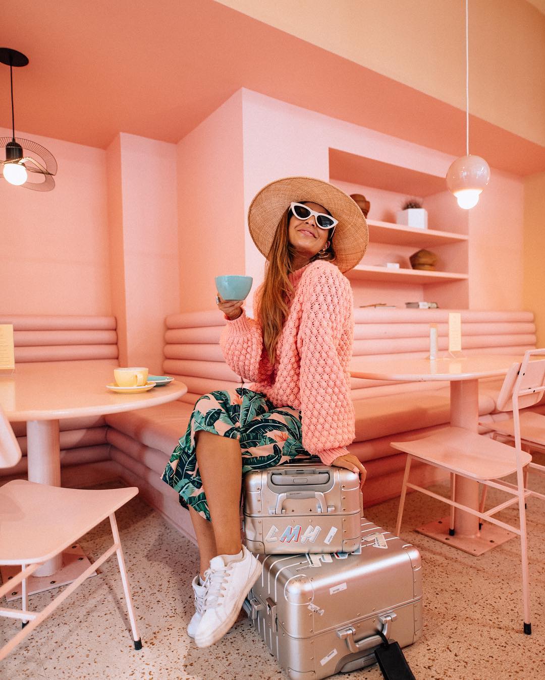 Spring and autumn are in perfect coordination for @lisahomsy’s OOTD. The pastel pink of her outfit reminds us of the daintiness of summer, plus her nature-designed skirt and hat have the same feel as well. If you think that her outfit is out-of-season, then you are surely mistaken!