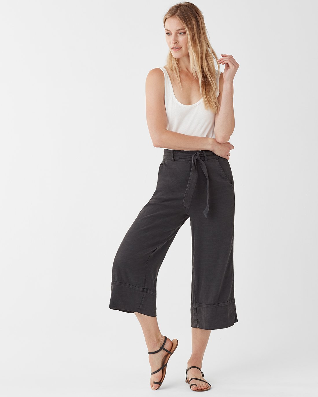 Cropped wide leg pants made from a soft and breathable linen slub in our Antique Coal colourway. Designed with a tie belt that cinches the waist and provides a bit of structure to these laid-back pants.