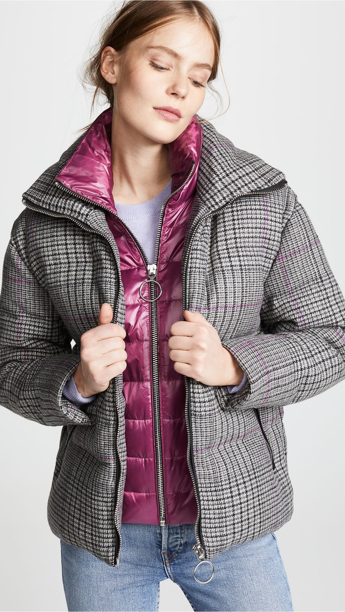 It’s 2019 and plaids still rocks! A jacket in this pattern, such as this Alma puffer coat, is unique and understated, even when thrown over one shoulder!