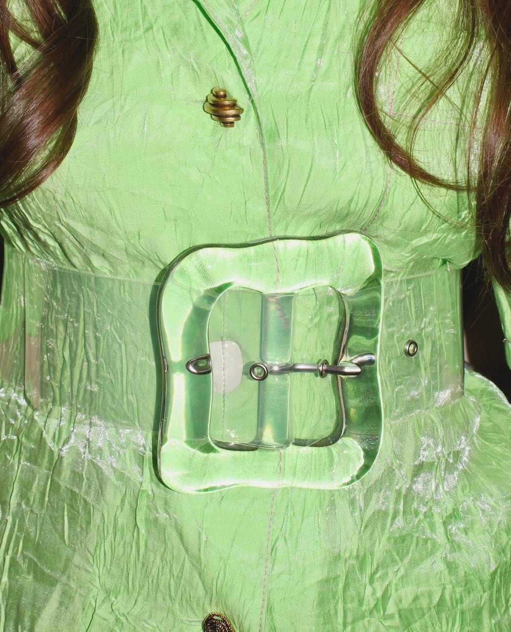 True to the maximalist styles taking over, many designers have decided to breathe new life into the crinkled trend by highlighting it in bold neon. London-based designer Rejina Pyo’s latest collection is almost completely dedicated to crinkled fabrics, using it on midi skirts, boxy shirts, and even bow bags. Each is distinctly decorated in shimmery hues of neon lime and orange — an exercise in “go big or go home.” Top it off with buildable statement jewellery, like the stackables we previously featured on Modesugar.