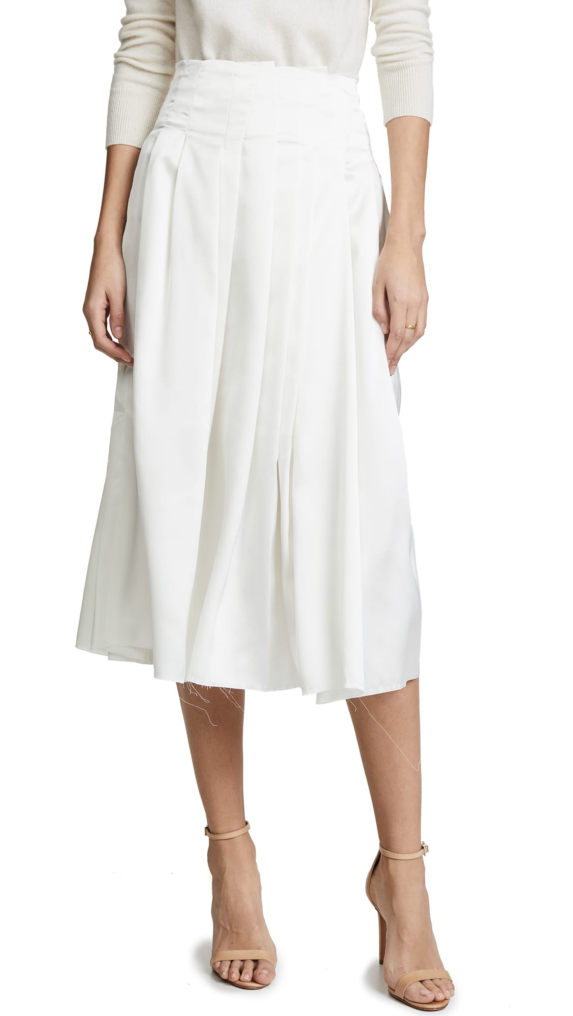 Anais Jourden Satin Pleated Midi Skirt