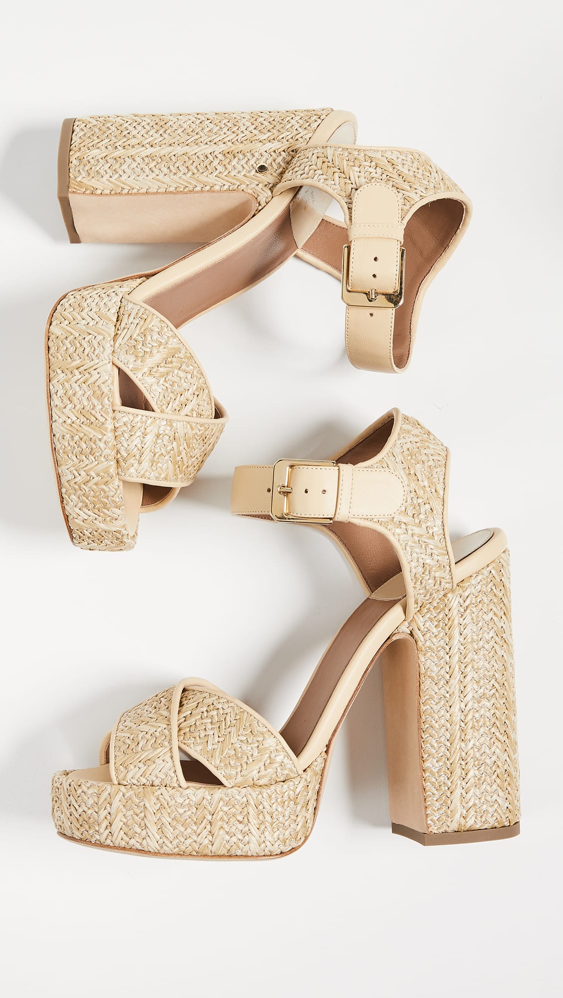 A good contrast to the almost-holy outfit are the chunky platforms. Step out solidly in this pair decked in woven raffia.