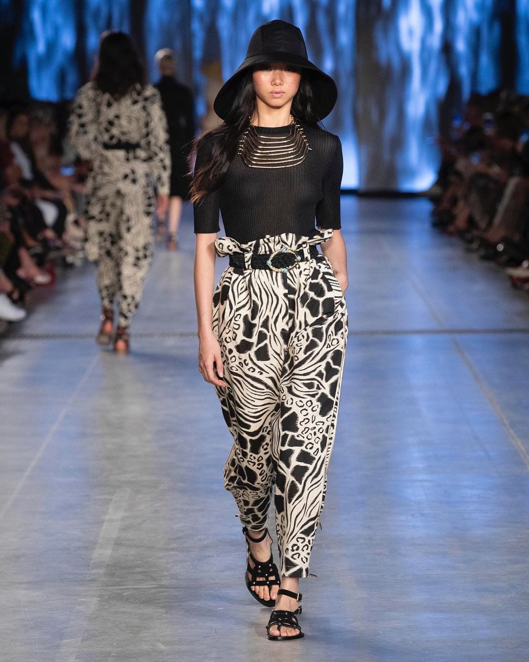 With its Italian-bred fashion style, Tod’s represents craftsmanship above all else, formulated with the heritage, leather and sex appeal. On the runway, the designer reserved the heritage of Italian fashion with a modern twist. Pieces from Tod’s show featured a bomber and palazzo shorts ensemble paired with the brand’s signature loafers and waist bag on an ‘80s chocolate short suit with a zebra trench coat.