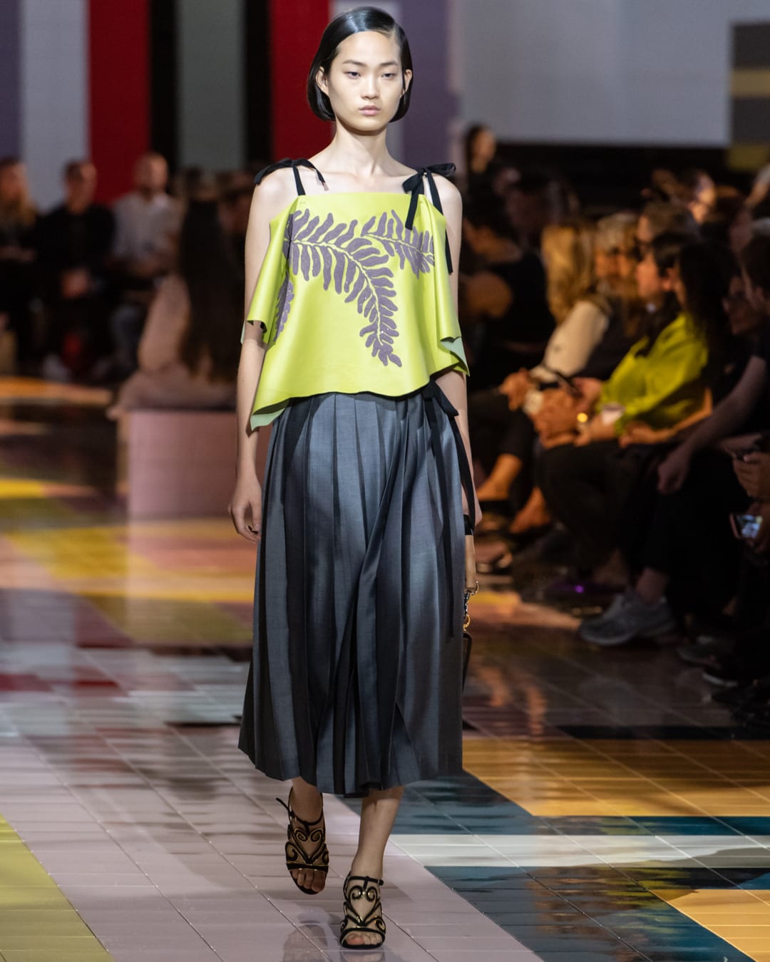 Prada pointed to a return to simplicity for Spring 2020 with ‘Reduction to an essence’. There were elements of the ‘20s flapper, ‘70s sophisticated a ‘90s minimalist.